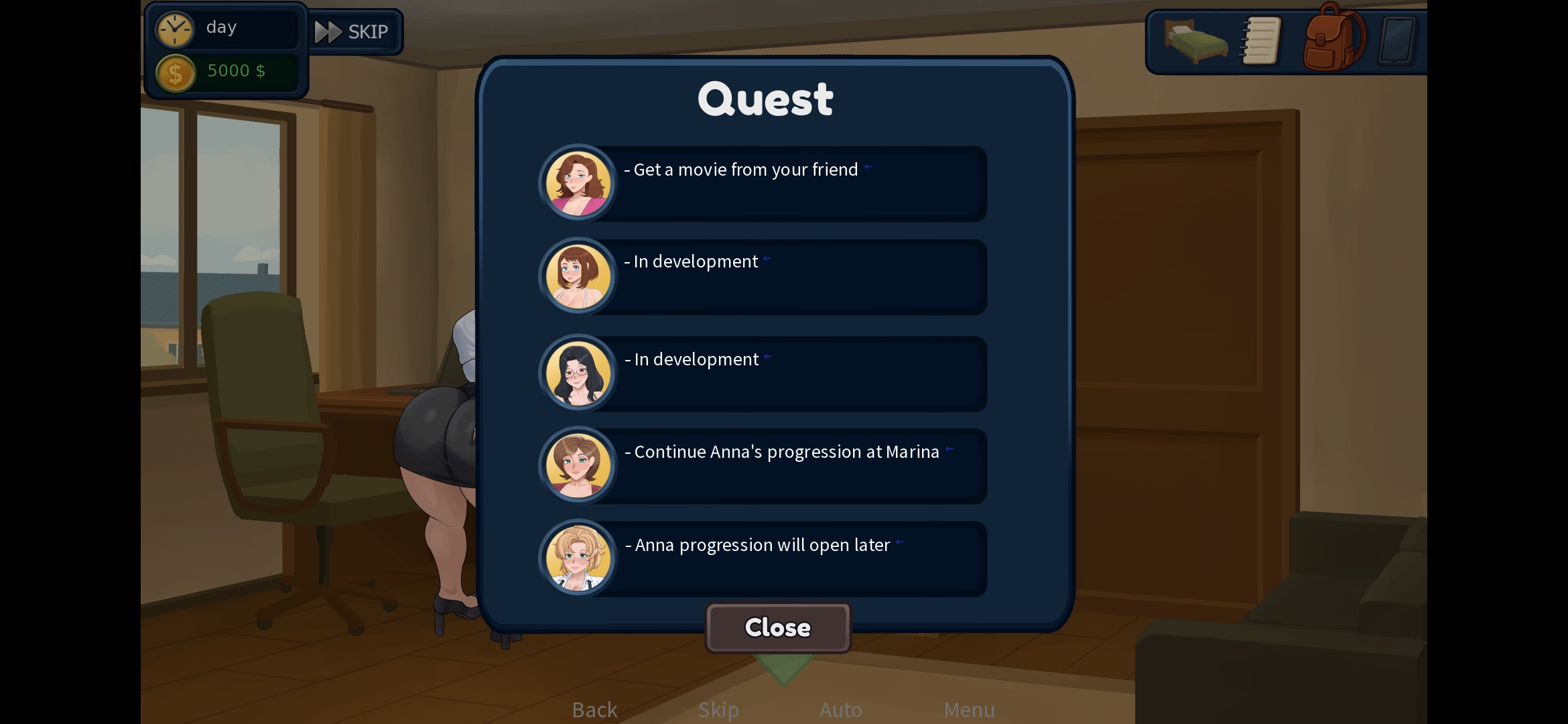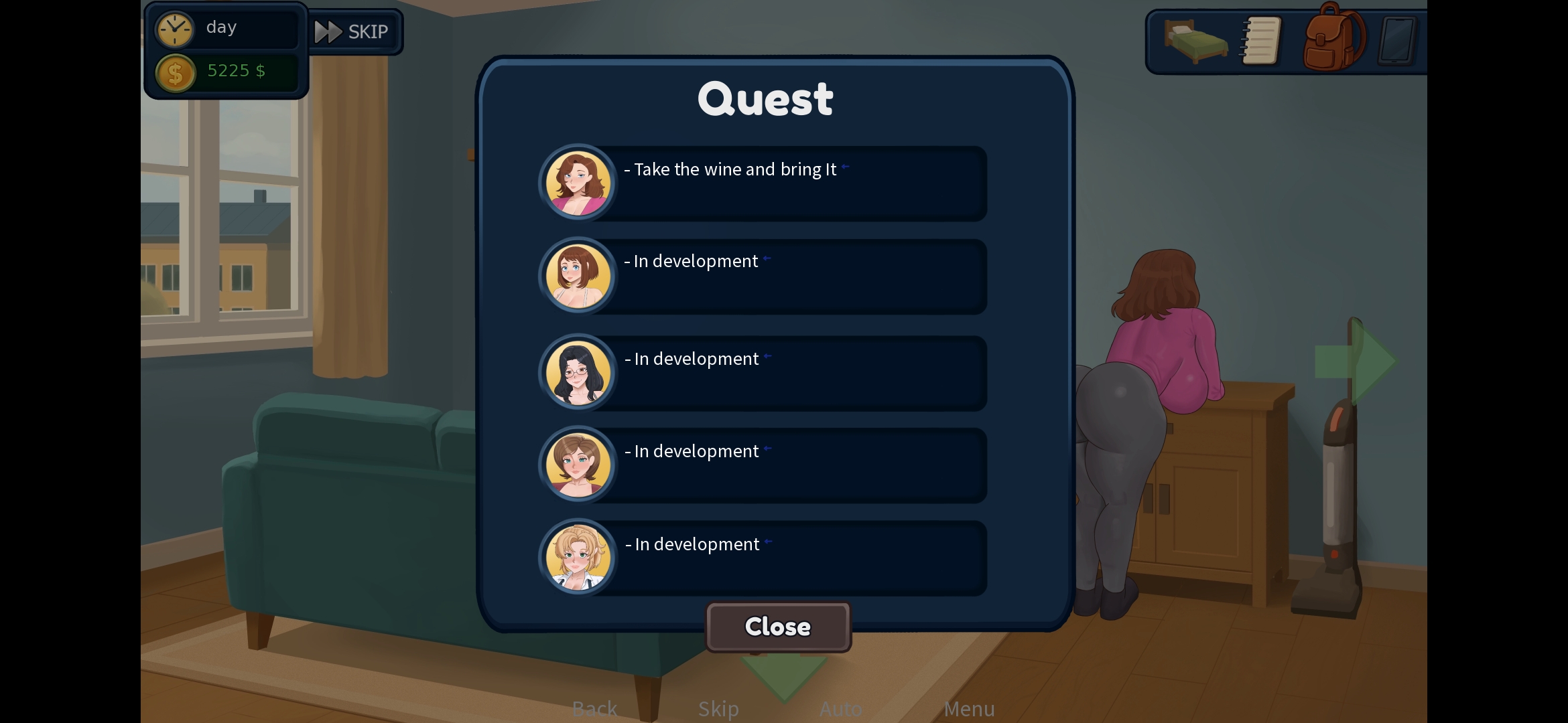 Okay, to start, I’d say the game is going pretty well overall. One small issue or maybe it’s just part of the game’s mechanics, is Lina appearing in the living room doing yoga and Lena sitting on the couch in the living room during certain parts of the quest. Again, I’m not sure if it’s intentional, but their appearances sometimes feel very spontaneous. Some days they are there, other days they aren’t, and in Lena’s case she sometimes stays there permanently or appears even after that part of her quest has already been completed.